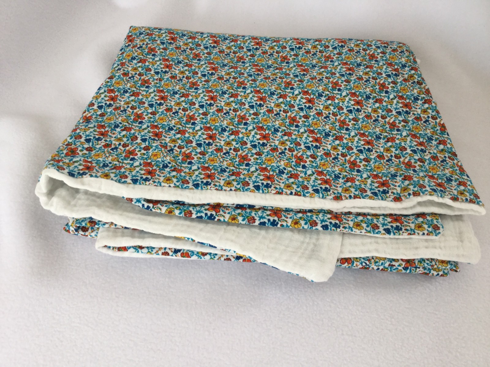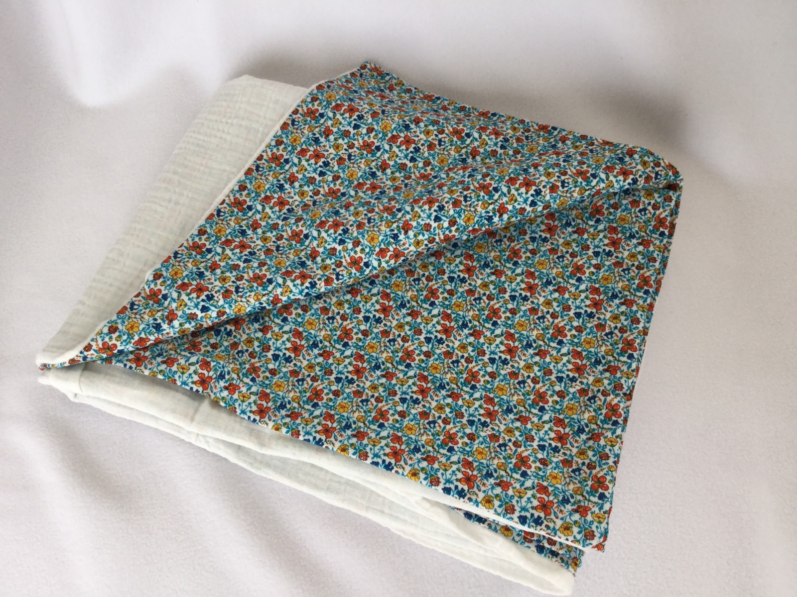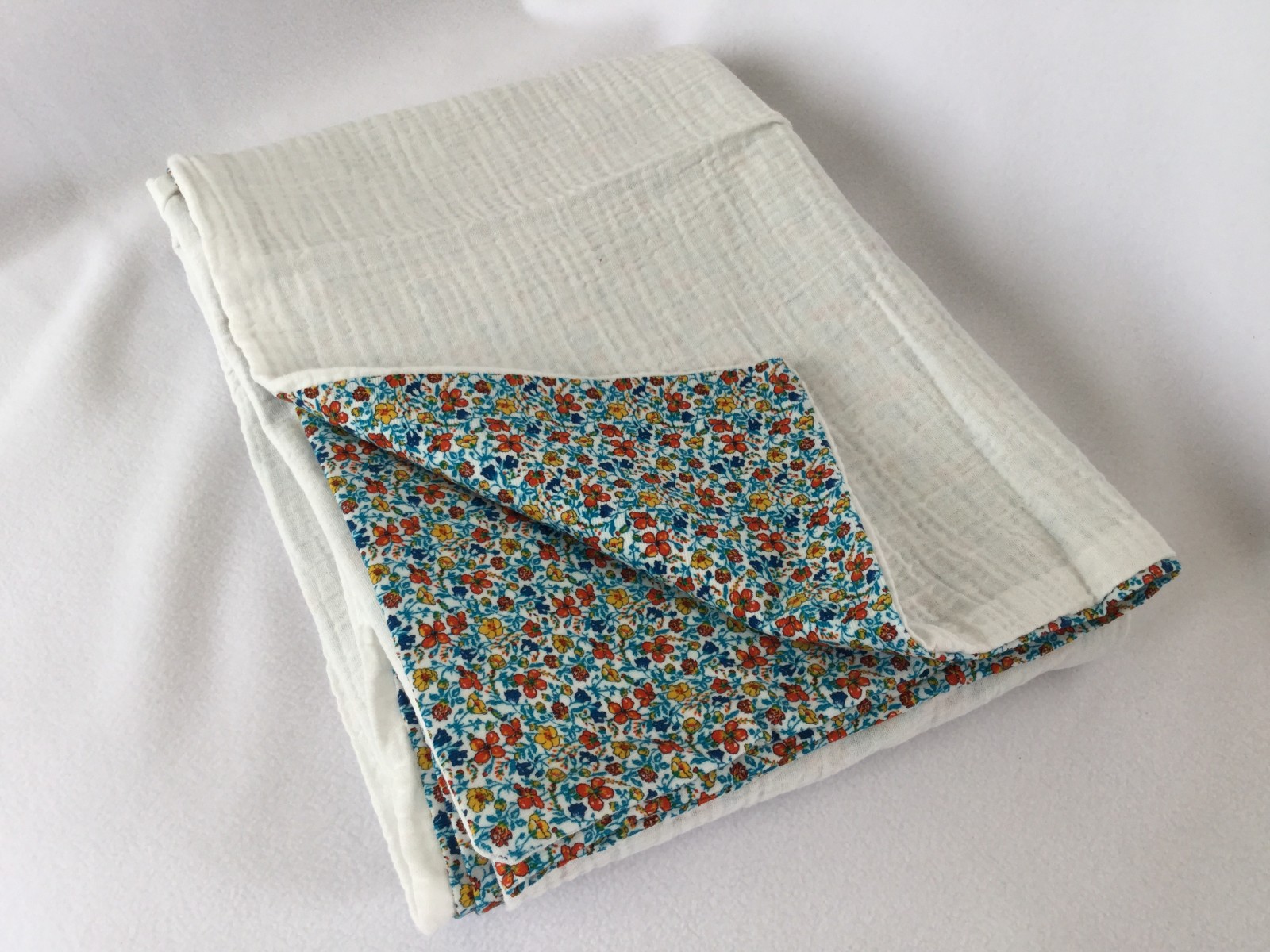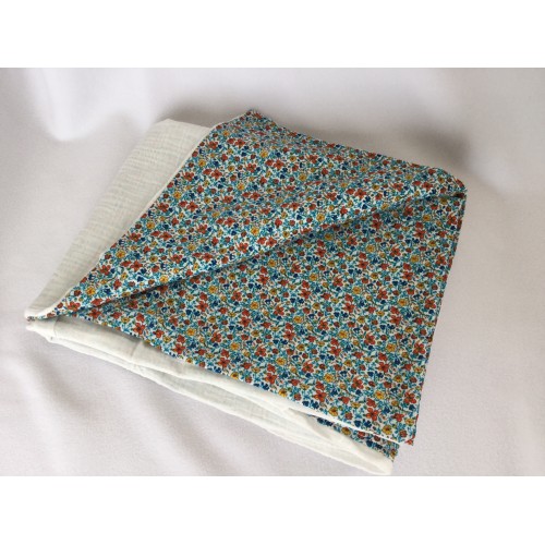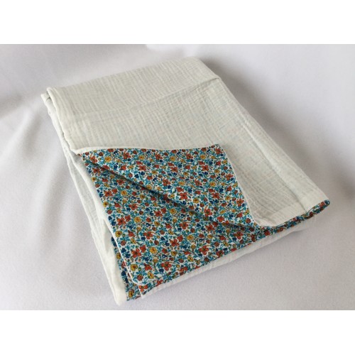 Le velour Liberty est d’une grande qualité, souple, léger, associé à la double gaze très douce et légère, cette couverture est idéale pour la mi saison ou les journées fraîches.